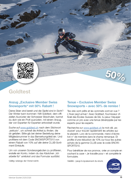 Offre réservée aux membres « Swiss Snowsports » – Nur für « Swiss Snowsports » Members Offerte